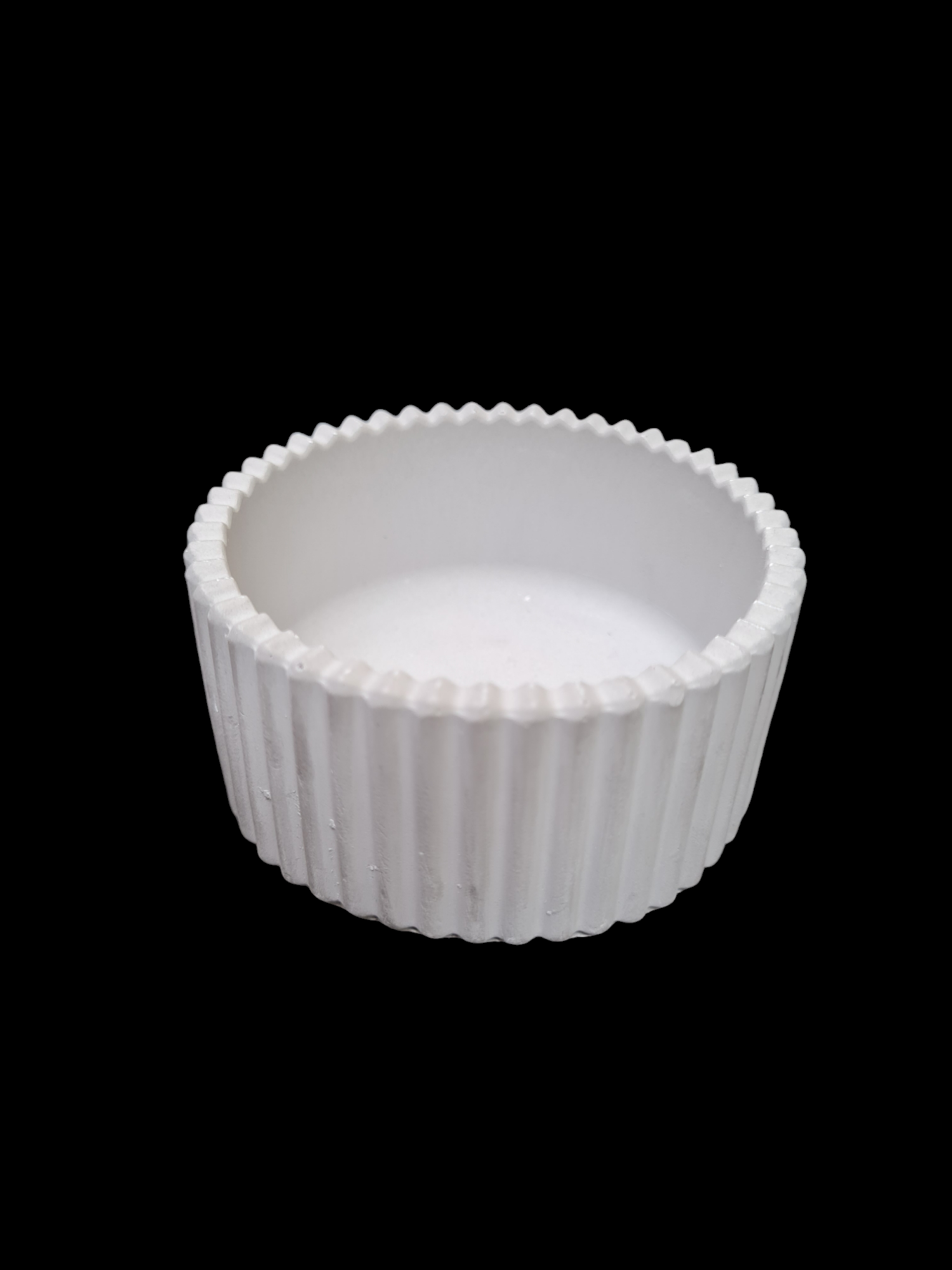 Die Schale in Pastellgrau hat einen Durchmesser von 8cm und ist circa 3.6 cm hoch.