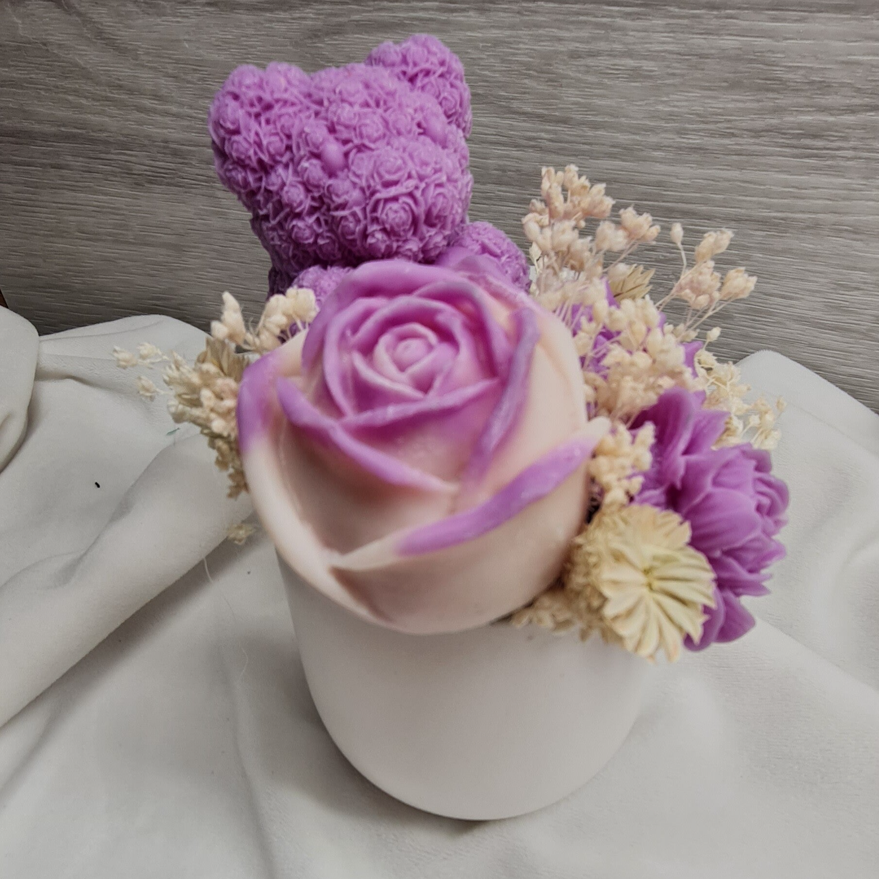 Alle Blumen welken, nur diese nicht. Kleine Blumengestecke aus Kerzenwachs und Trockenblumen die ewig halten.